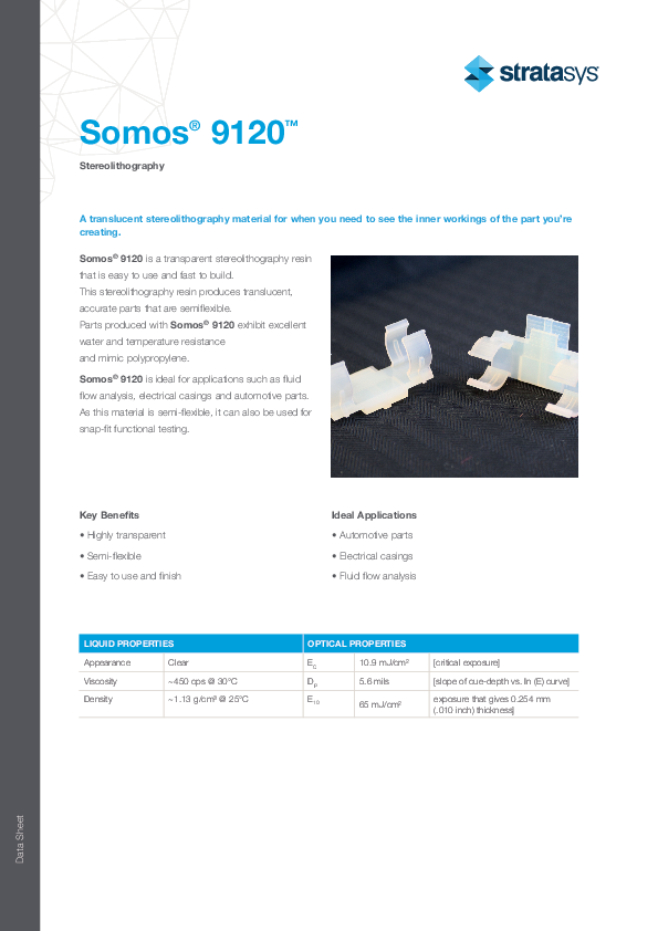 Somos® 9120 ist ein transparentes Stereolithographieharz das einfach zu handhaben und schnell zu fertigen ist.