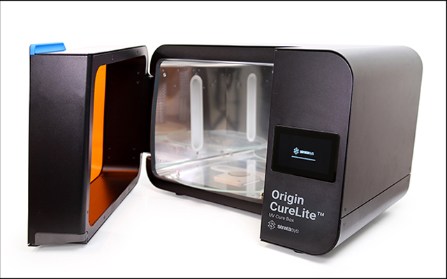 Unser Advanced DLP-Bundle besteht aus dem hochmodernen 3D-Drucker Stratasys Origin Two, der automatisierten Auswaschanlage DEMI X 520 und der UV-Nachhärtekammer Origin CureLite.