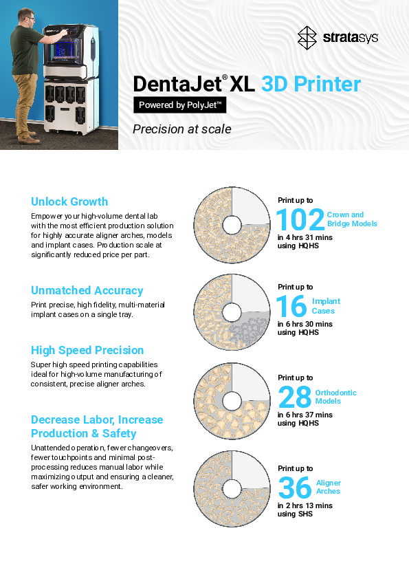 Der DentaJet XL ist mit seiner kleinen Stellfläche, der rotierenden Bauplattform und großem Materialfassungsvermögen auf maximale Effizienz ausgelegt. In einem einzigen Druckvorgang mit gemischtem Tray können Sie mehr Dentalteile herstellen - mit weniger Umrüstungen, Präzision, Geschwindigkeit und niedrigen Kosten pro Teil.