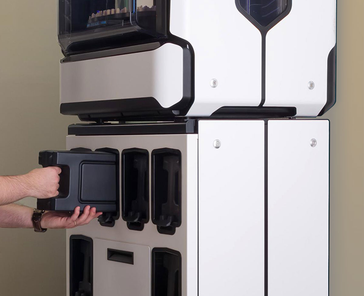 • großer Materialvorrat; 4 Kartuschen Modellmaterial und 2 Kartuschen Supportmaterial