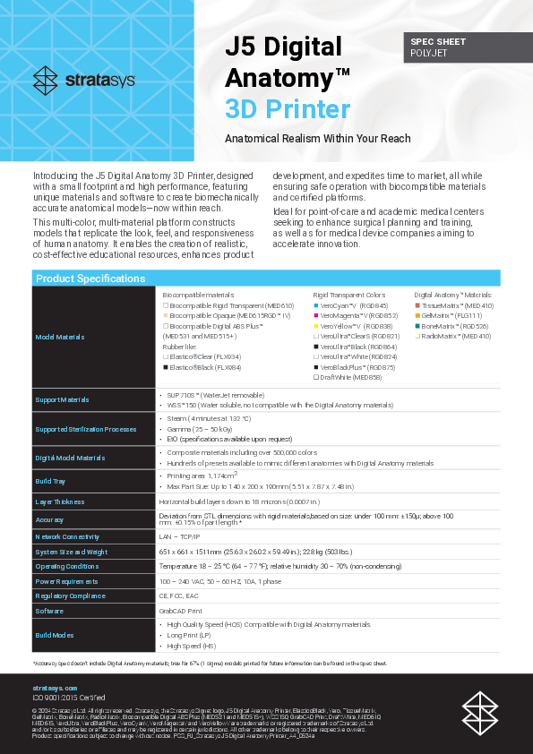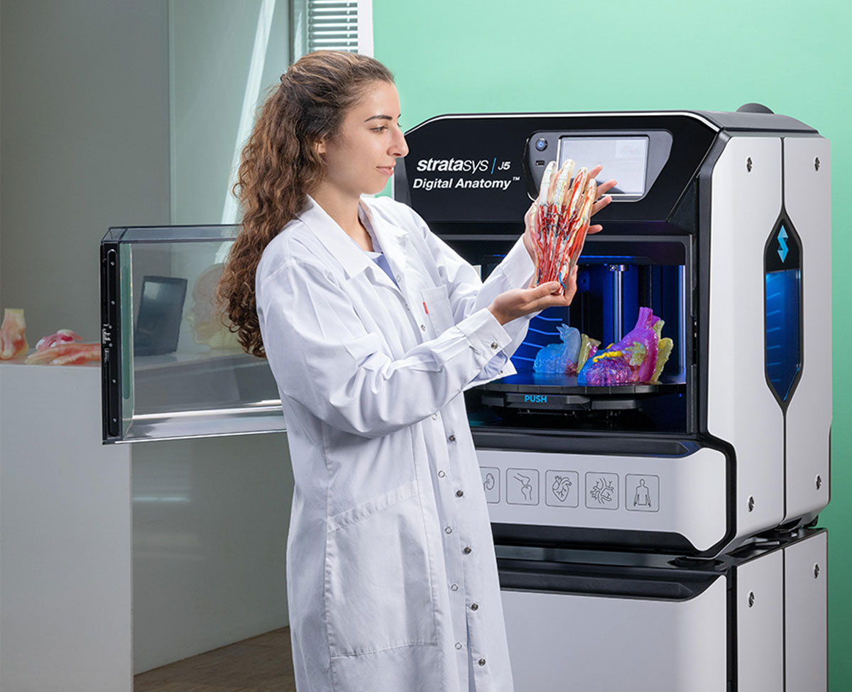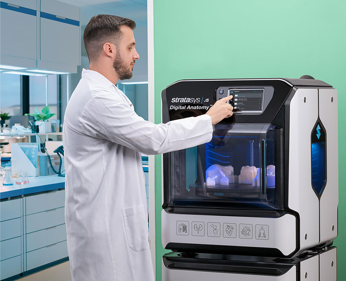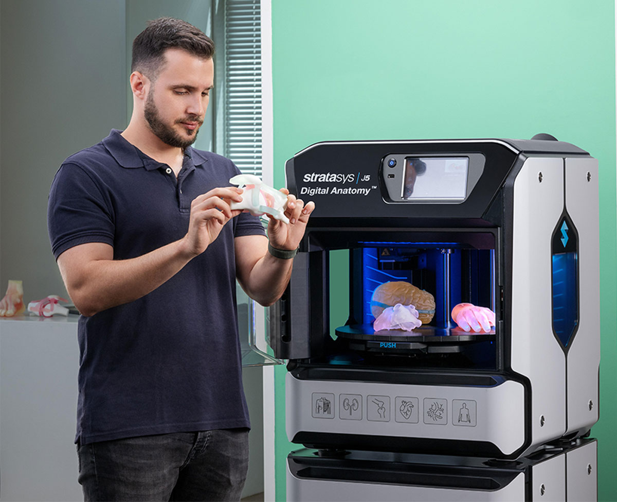 Der J5 Digital Anatomy 3D Printer ermöglicht die präzise Herstellung biomechanisch genauer, äußerst realistischer anatomischer Modelle. Mit dem 3D-Drucker können das Aussehen, die Haptik und die Reaktionsfähigkeit der menschlichen Anatomie exakt nachgebildet werden. Erwecken Sie detaillierte, patientenspezifische Modelle zum Leben, welche die chirurgische Vorbereitung verbessern, die Ergebnisse für den Patienten steigern und die Innovation im Produktdesign beschleunigen.