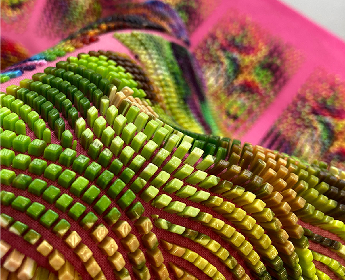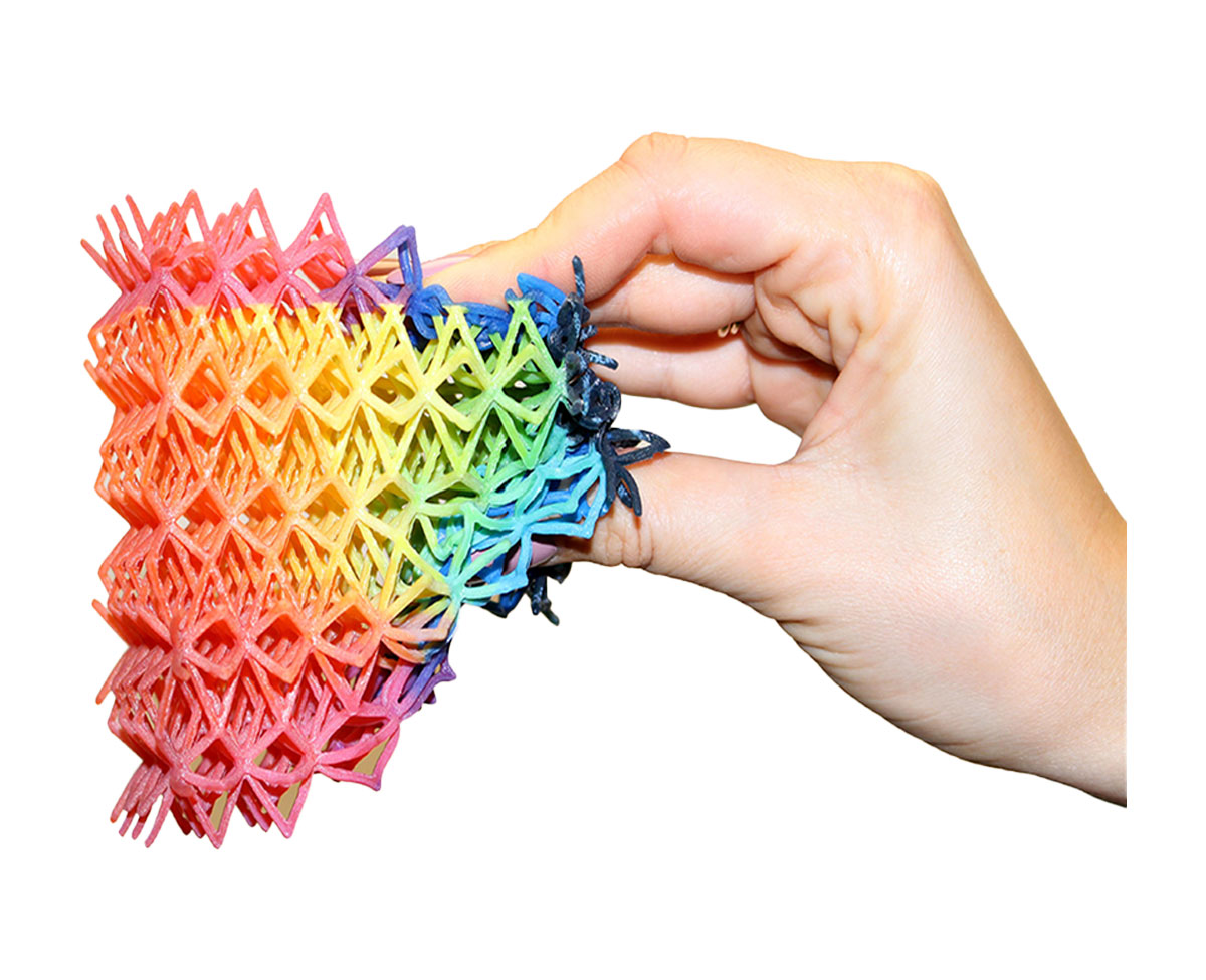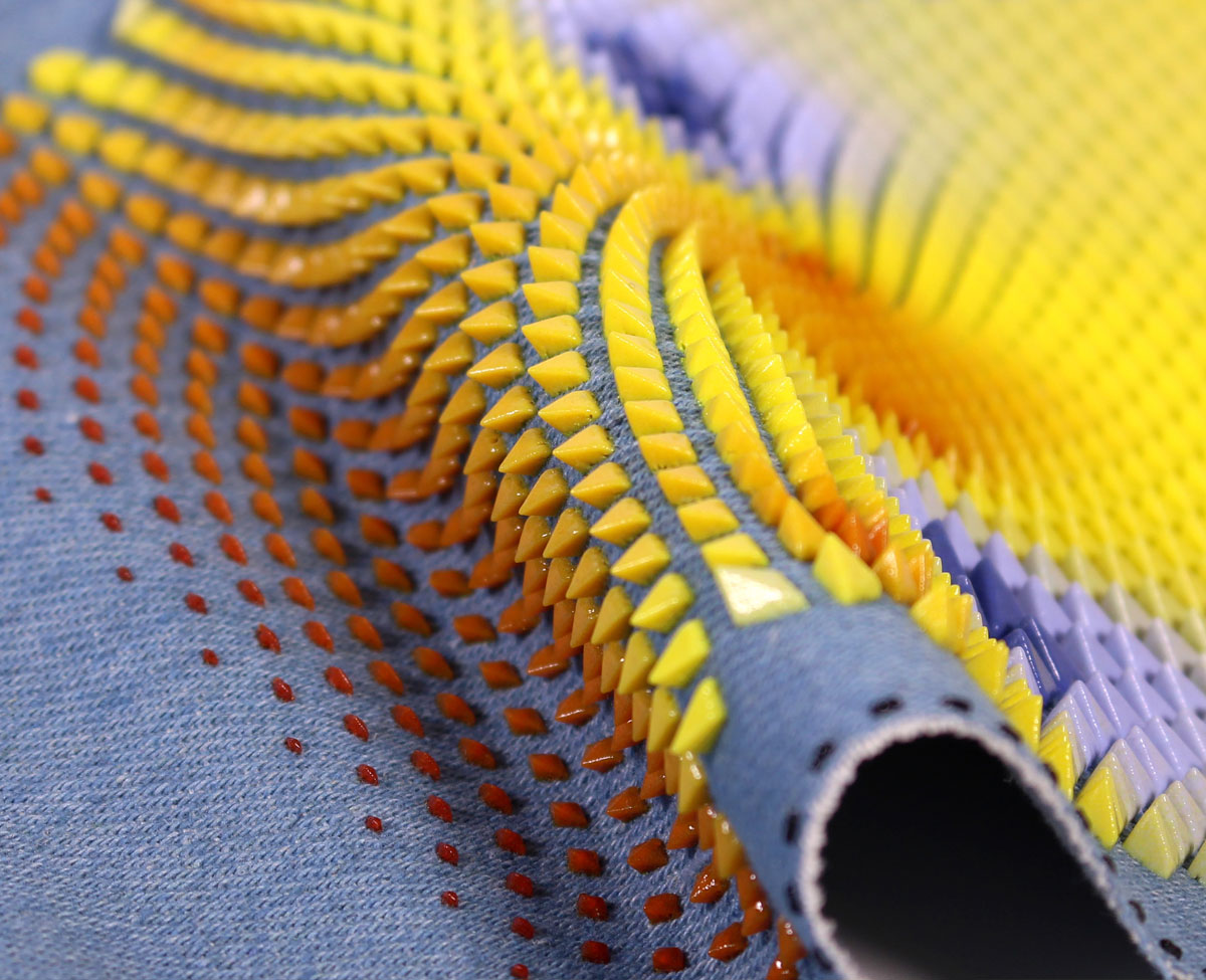 Der Stratasys J850 TechStyle ermöglicht es Modedesignern, faszinierende Illusionen mit Farbe und Licht auf Textilien zu schaffen. Dank einer breite Palette von festen, transparenten und flexiblen Materialien sind Kreationen mit fantastischen optischen Täuschungseffekte realisierbar.