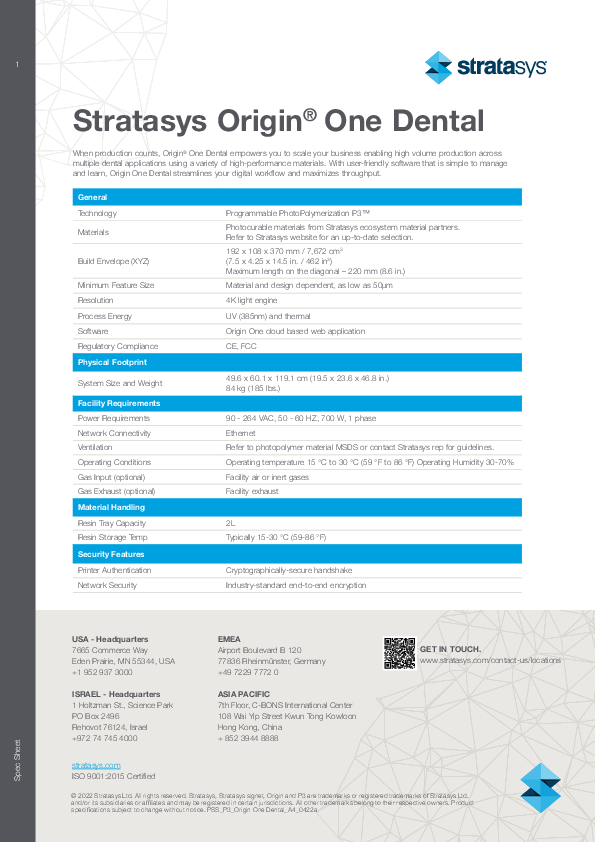 Der Stratasys Origin® One Dental 3D-Drucker für Zahnlabore ist eine industrielle Produktionslösung basierend auf modernster P3-Technologie. Maximieren Sie die Produktion für eine Vielzahl von Anwendungen mit Material von branchenführenden Partnern. Dank der benutzerfreundlichen, leicht zu verwaltenden und zu erlernenden Software optimiert der 3D-Drucker für Dentalanwendungen den digitalen Arbeitsablauf und den Durchsatz.