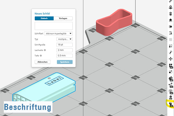 • Teilebeschriftungen & Etiketten: Prägen oder erhaben drucken Sie Text, Seriennummern oder Logos direkt auf dem Modell – automatisiert, reproduzierbar und rückverfolgbar.
