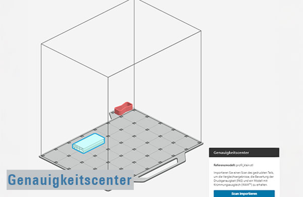 • Accuracy Center (WAM): Vergleichen Sie gedruckte Teile mit dem digitalen Modell – für bis zu zehnmal höhere Maßgenauigkeit und reproduzierbare Ergebnisse.