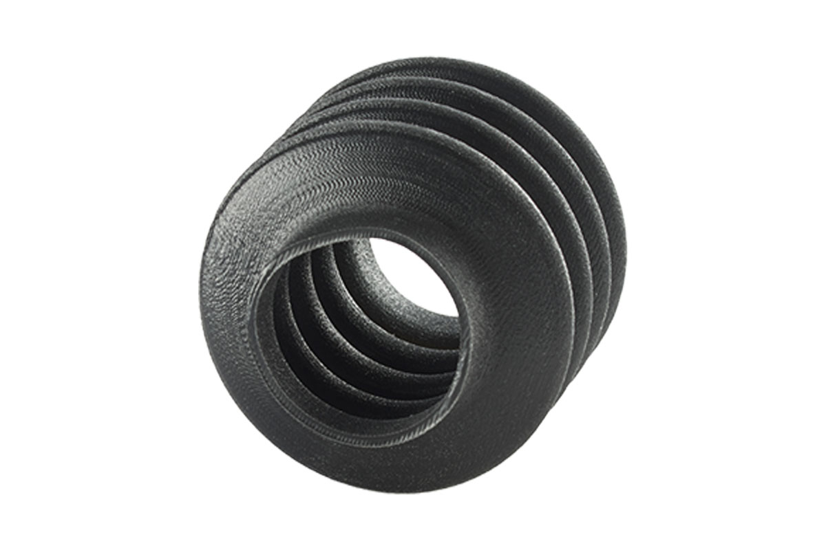 Die gummiartigen Materialien simulieren elastische Werkstoffe wie NBR oder EPDM und vermitteln die Optik und Haptik von Silikon, Latex oder Gummi. Sie weisen eine Vielzahl an elastomeren Eigenschaften wie z. B. einen Härtegrad auf der Shore A Skala, Bruchdehnung sowie Reiß- und Druckverformungsrest auf. Somit sind sie bestens für Designverifizierungen im Rapid Prototyping geeignet.